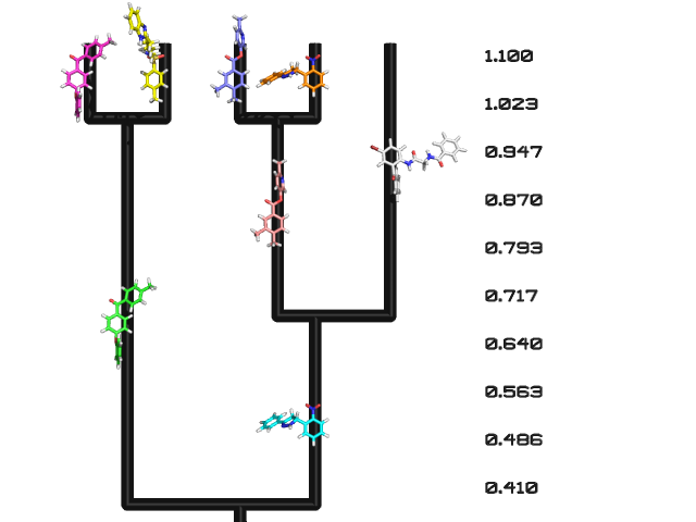Clustering algorithms are used as data analysis tools in a wide variety of applications in Biology. Clustering has become especially important in protein structure prediction and virtual high throughput screening methods. In protein structure prediction, clustering is used to structure the conformational space of thousands of protein models. In virtual high throughput screening, databases with millions of drug-like molecules are organized by structural similarity, e.g. common scaffolds. The tree-like dendrogram structure obtained from hierarchical clustering can provide a qualitative overview of the results, which is important for focusing detailed analysis. However, in practice it is difficult to relate specific components of the dendrogram directly back to the objects of which it is comprised and to display all desired information within the two dimensions of the dendrogram. The current work presents a hierarchical agglomerative clustering method termed bcl::Cluster. bcl::Cluster utilizes the Pymol Molecular Graphics System to graphically depict dendrograms in three dimensions. This allows simultaneous display of relevant biological molecules as well as additional information about the clusters and the members comprising them. Additional details on how to use BCL::Cluster are available in the manual .